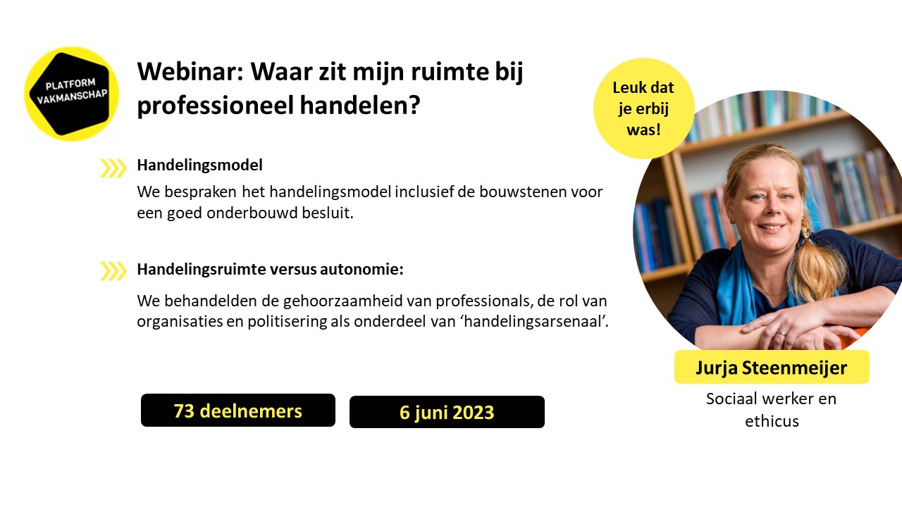 Gisteren vond de webinar ‘Waar zit mijn ruimte bij professioneel handelen?’ plaats.
